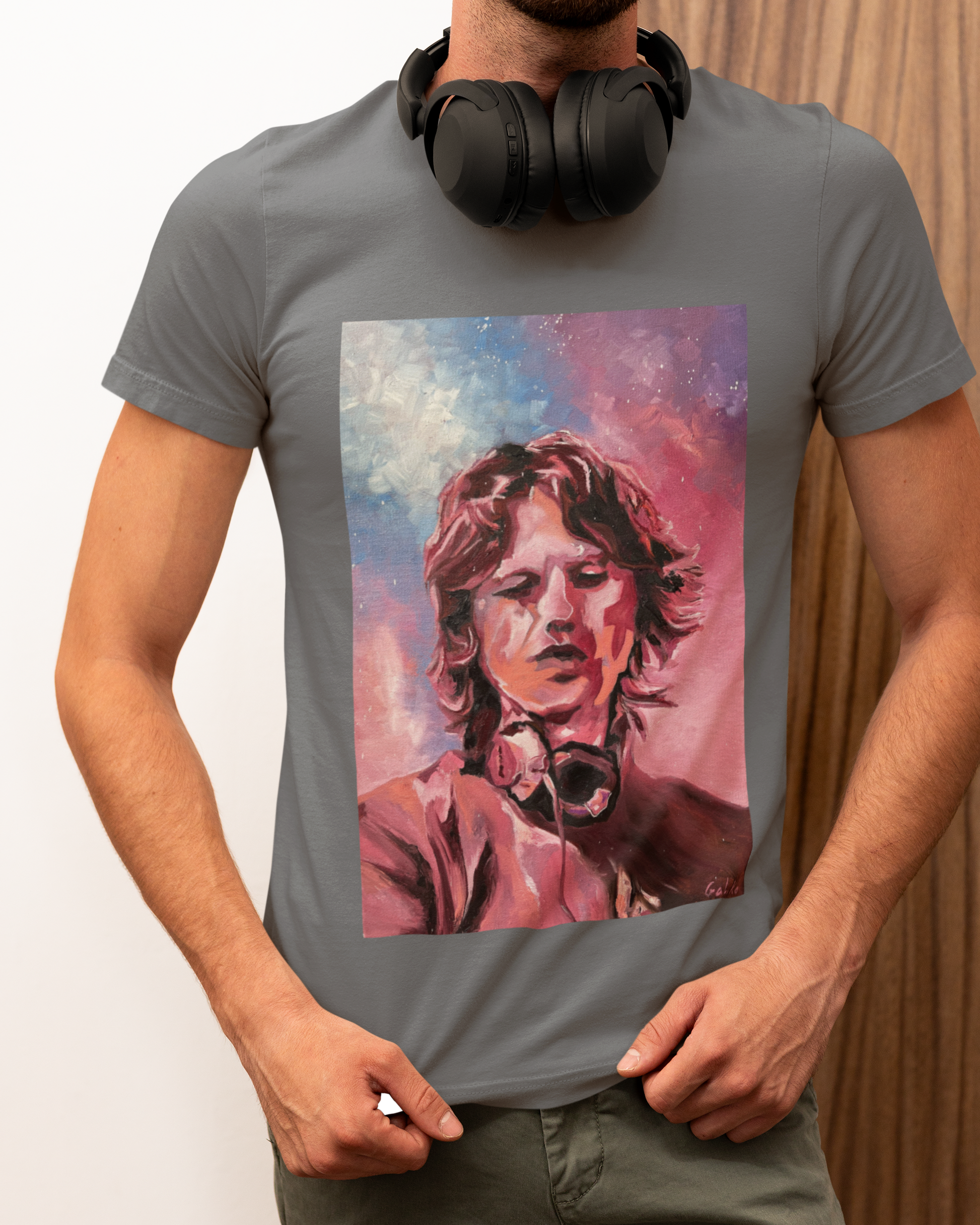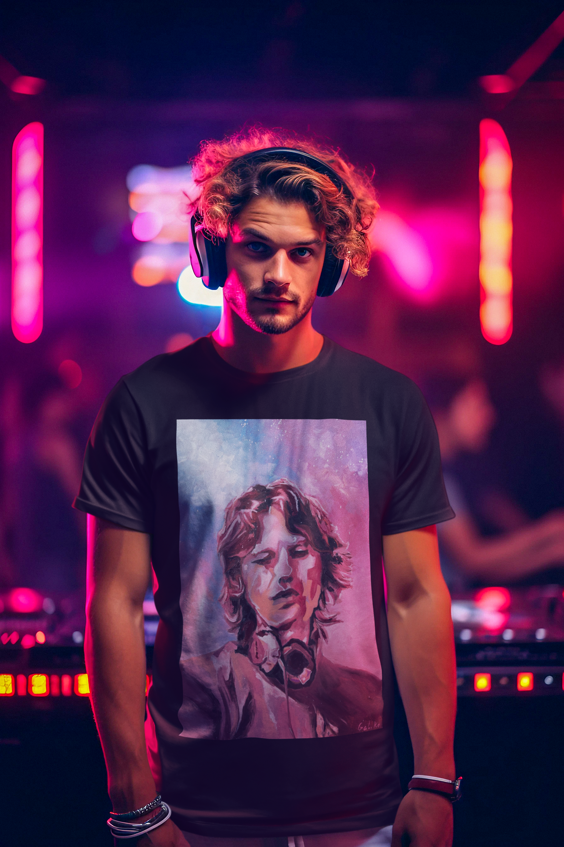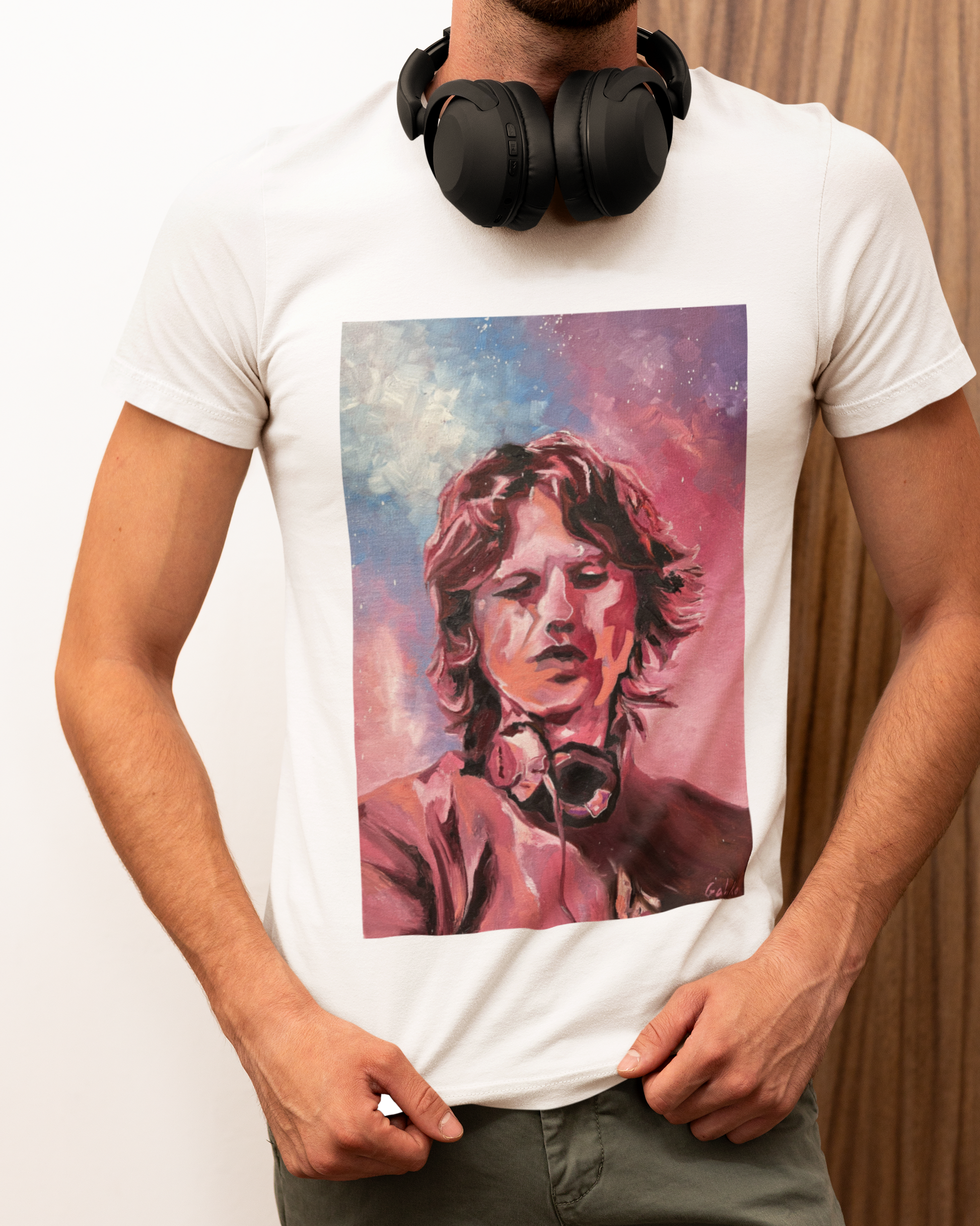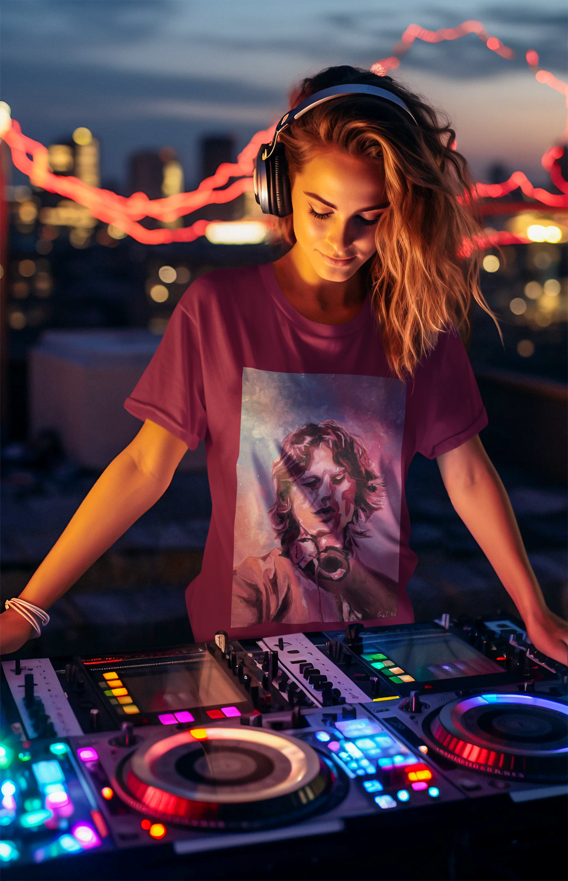 Този дизайн съчетава музика, изкуство и индивидуалност в шедьовър, който може да се носи. От маслени бои, в принт. Перфектна за тези, които се наслаждават на звука и себеизразяването.